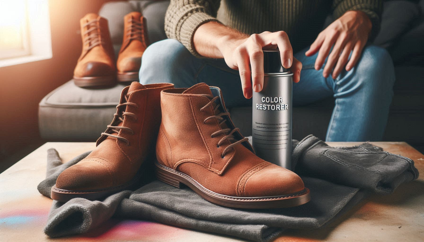 Для відновлення кольору замшевого взуття використовуйте спеціальні фарбуючі спреї. Нанесіть їх на очищене взуття і дайте висохнути.